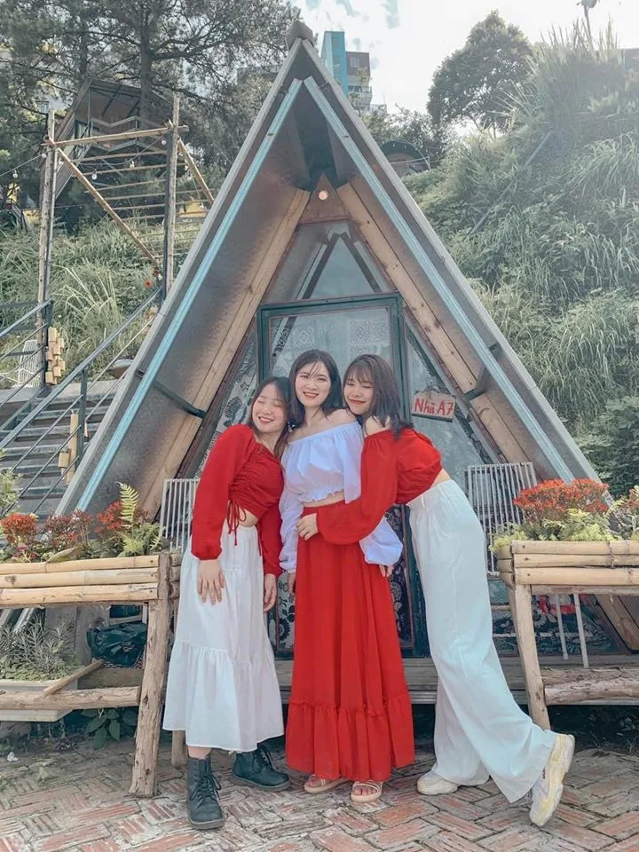 10h: Tụi mình book Nhà A lớn ở 90S HOMESTAY Tam Đảo (cách thị trấn 1- 2km) qua gửi nhờ hành lý rồi đi chơi. Homestay nhiều phòng mây, cây, vintage, A nhỏ, bé siêu xinh, view bình minh, hoàng hôn, đèn đêm,… cân tất nhé bonus nhân viên siêu nhiệt tình.(550k/phòng to) 90s Homestay