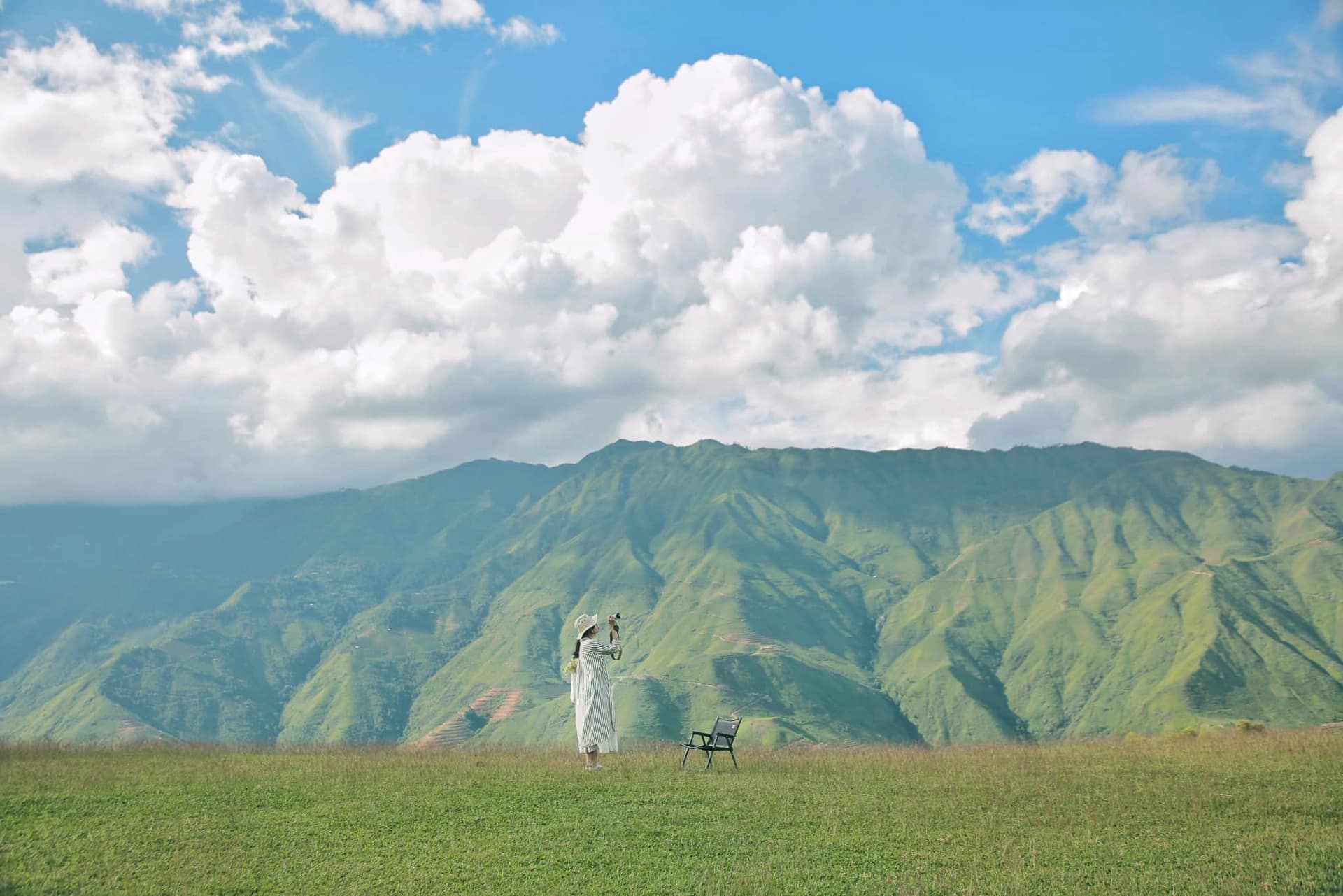 Thảo nguyên Tà Xùa: Nhìn từ đây bạn sẽ thấy những dãy núi lớn xanh mướt mắt và bầu trời rộng mênh mông. Mùa này ở đây ngút ngàn màu xanh tươi mát