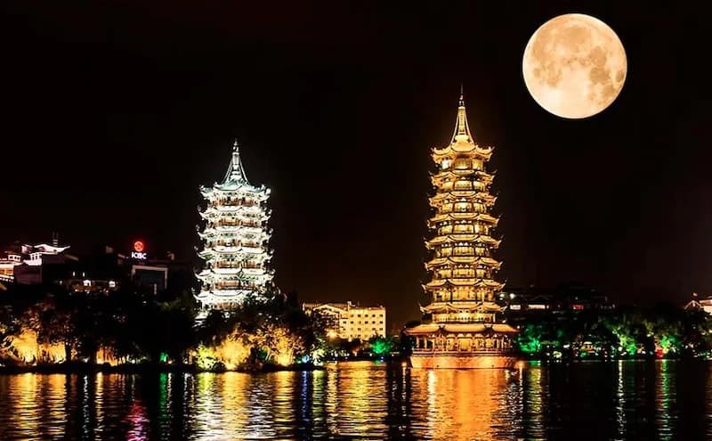 Buổi tối Quý khách tự do thăm quan mua sắm đồ lưu niệm tại phố Trung Sơn hoặc tản bộ ngắm cảnh đêm Quế Lâm với các công trình trên nước trong khu Phong Cảnh 2 Sông 4 Hồ, Nhật Nguyệt Song Tháp -ánh sáng lung linh tuỵệt đẹp tượng trưng cho mặt trăng và mặt trời, ngắm Cầu Thuỷ Tinh - với hệ thống đèn chiếu sáng công nghệ cao làm cho du khách ngỡ mình đang bước vào một thế giới mê cung huyền bí.