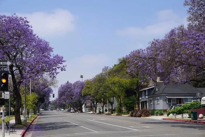 Đi dọc các con phố quý khách dừng chân ngắm nhìn con đường hoa phượng tím ở California, Mỹ là một trong những thời điểm lãng mạn và đẹp nhất trong năm. Khi mùa hè đến, những con đường và khu phố khắp nơi từ San Diego đến Los Angeles đều ngập tràn sắc tím của hoa phượng, tạo nên một bức tranh thiên nhiên rực rỡ và quyến rũ khiến cho bao trái tim si tình phải xao xuyến. Ở Mỹ hoa Phượng Vĩ Tím (Jacaranda) được trồng nhiều ở miền Nam Cali, khung cảnh những con đường hoa phượng tím rụng như một tấm thảm tím biếc đẹp như trong các câu chuyện cổ tích.