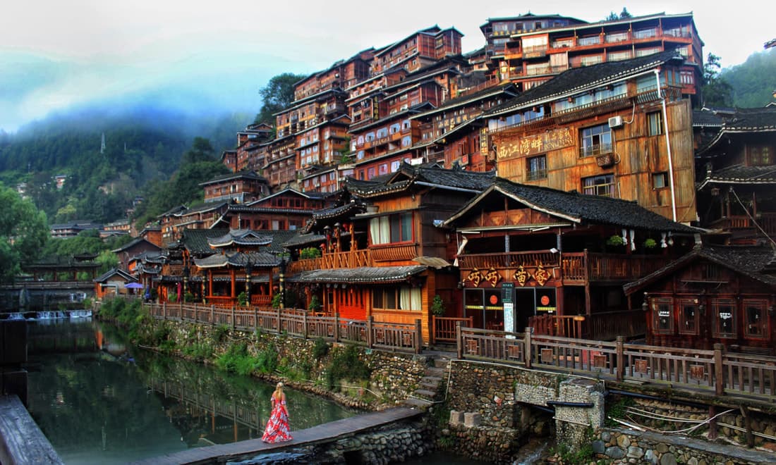 Tây Giang Thiên Hộ Miêu Trại - Thành phố văn hóa lịch sử của Trung Quốc, làng cảnh quan của Trung Quốc. Đây là bản làng có cộng đồng người Miêu lớn nhất thế giới. Dạo bước trên những con phố cổ, nghỉ ngơi trên cầu gió và mưa, cảm nhận cuộc sống yên bình nơi thôn quê. Từ đài quan sát, quý khách có thể ngắm nhìn cảnh đêm Tây Giang, chiêm ngưỡng :Cảnh đèn đêm rực rỡ giữa đại ngàn", ánh sáng lung linh khắp núi đồi như những vì sao trên bầu trời, thật tuyệt vời.