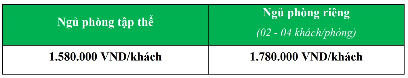 - Phụ thu phòng đơn: 400.000 VNĐ/khách